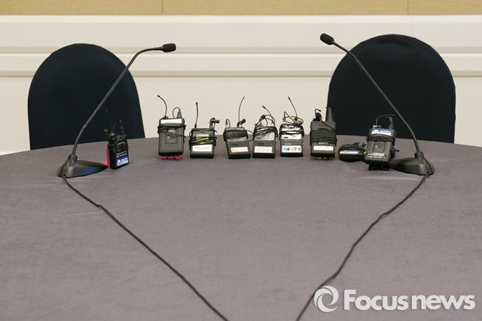 (서울=포커스뉴스) 선거구획정과 쟁점법안 논의를 위한 여·야 대표, 원내대표 2+2 회동이 무산된 26일 오전 서울 여의도 국회 귀빈식당에 취재를 위한 마이크만 놓여 있다.