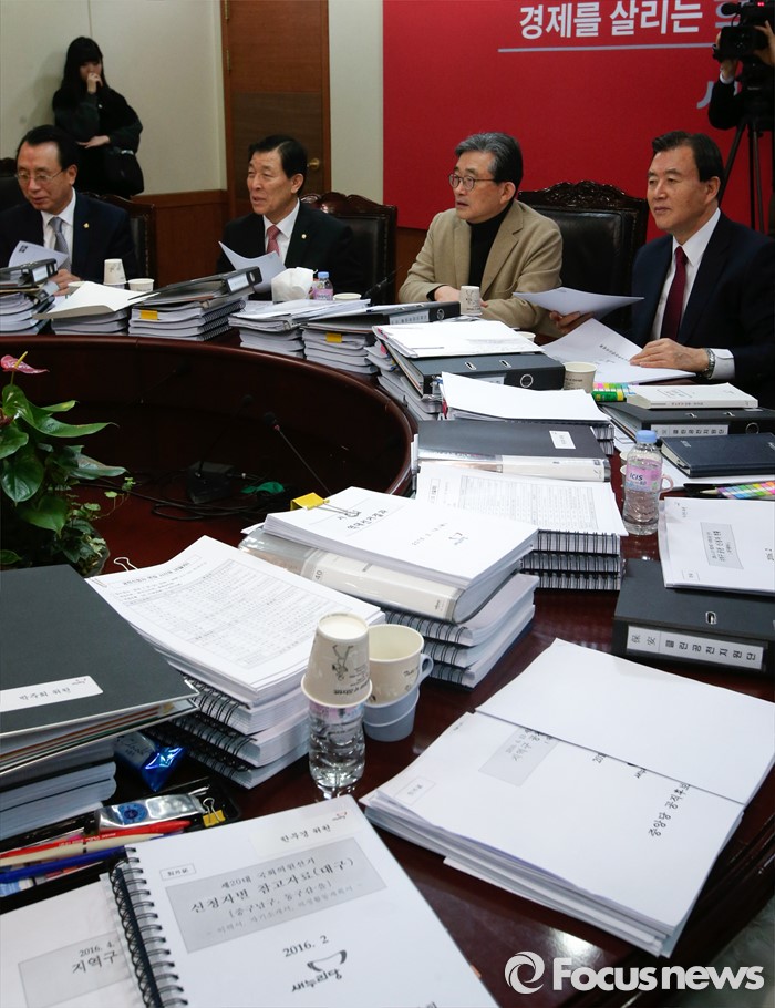 (서울=포커스뉴스) 26일 오전 서울 여의도 새누리당사에서 열린 20대 총선 공천 신청자 면접심사에 참석한 이한구 공천관리위원장 등 위원들이 대구 중구남구 예비후보들에게 질문하고 있다.