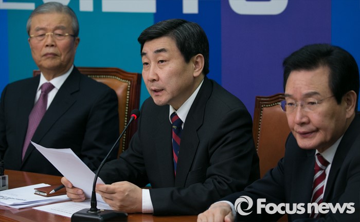 (서울=포커스뉴스) 이종걸 더불어민주당 원내대표가 26일 오전 서울 여의도 국회에서 열린 비대위-선대위 연석회의에 참석해 모두발언을 하고 있다.