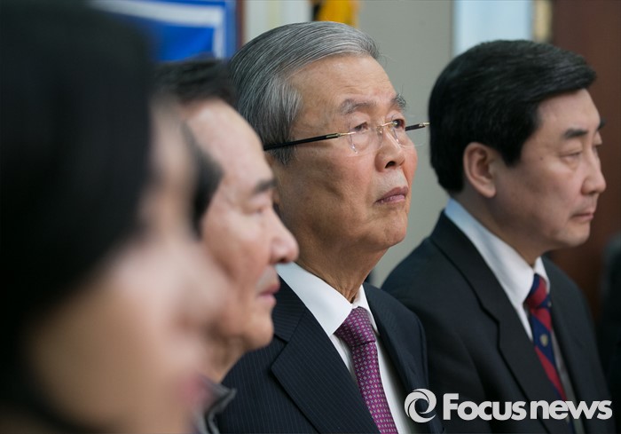 (서울=포커스뉴스) 김종인(오른쪽 두번째) 더불어민주당 비대위 대표, 이종걸(오른쪽 첫번째) 원내대표가 26일 오전 서울 여의도 국회에서 비대위-선대위 연석회의에 앞서 부실부채 탕감 퍼포먼스를 마친 뒤 한 참석자의 주빌리은행 상담사례를 듣고 있다.