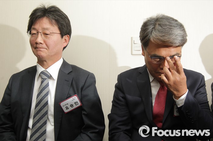 (서울=포커스뉴스) 26일 오전 서울 여의도 새누리당사에서 열린 20대 총선 공천 신청자 면접심사에 참석한 유승민(왼쪽), 이재만 대구 동구을 예비후보가 면접을 기다리고 있다.