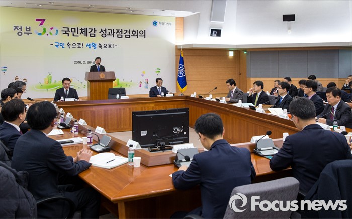 (서울=포커스뉴스) 26일 오후 서울 중구 정부서울청사 별관에서 열린 '2016년 제1회 정부3.0 국민체감 성과점검회의'에 참석한 송희준 정부3.0추진위원장이 격려사를 하고 있다.