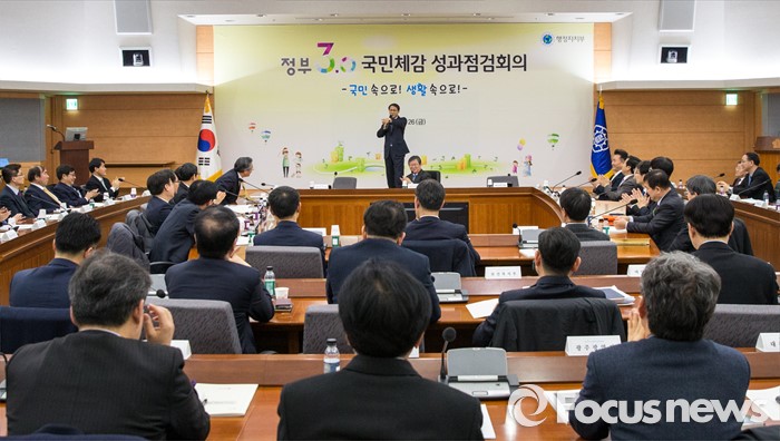 (서울=포커스뉴스) 26일 오후 서울 중구 정부서울청사 별관에서 열린 '2016년 제1회 정부3.0 국민체감 성과점검회의'에 참석한 김성렬 행정자치부 차관이 인사말을 하고 있다.