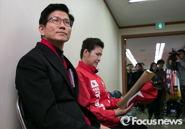 (서울=포커스뉴스) 26일 오후 서울 여의도 새누리당사에서 열린 20대 총선 공천 신청자 면접심사에 참석한 김문수(왼쪽), 안영희 대구 수성갑 예비후보가 면접을 기다리고 있다.