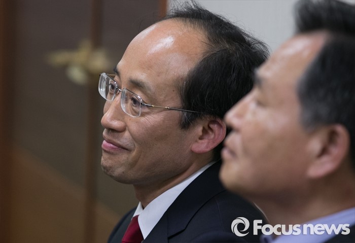 (서울=포커스뉴스) 26일 오후 서울 여의도 새누리당사에서 열린 20대 총선 공천 신청자 면접심사에 참석한 추경호(왼쪽) 대구 달성군 예비후보가 면접을 기다리고 있다.