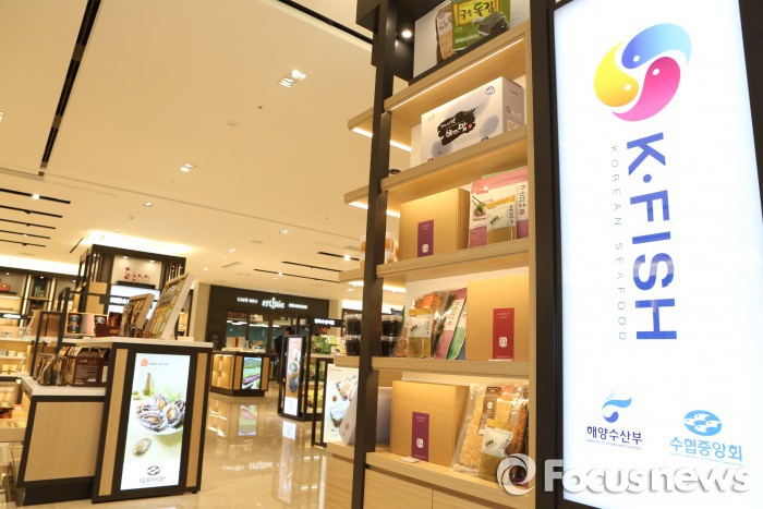 국내 면세점에 수산물을 파는 전용관이 생긴 건 이번이 처음이다. 20여㎡ 규모로, 수협 회원조합 뿐만 아니라 국내 수산식품업체 등에서 생산한 상품 50여개가 입점했다.