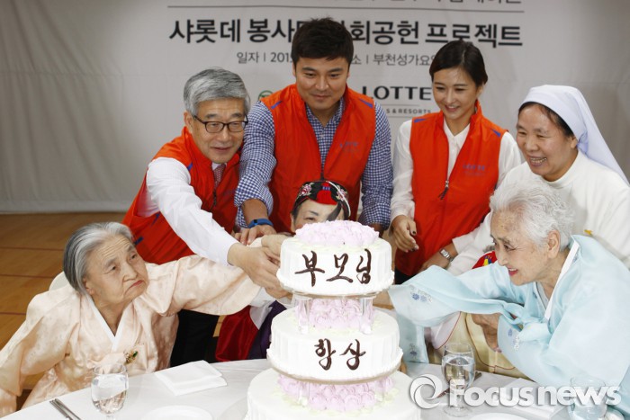 롯데호텔 관계자는 “앞으로도 롯데호텔은 사회적 기업으로서 제 역할을 다하기 위한 사회공헌 활동을 더욱 강화해 나갈 계획이다”라고 말했다.2015년 11월24일 롯데호텔 홍보대사 추신수 선수와 샤롯데 봉사단이 함께 한 부천성가요양원 사랑의 생신장치 봉사에서 송용덕 롯데호텔 대표, 추신수 선수(가운데), 부인 하원미씨가 어른신들과 생일 케이크를 자르고 있다.<사진제공=롯데호텔>