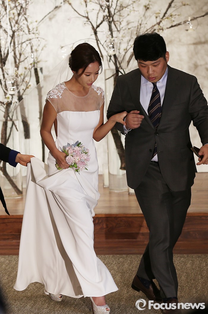 (서울=포커스뉴스) 25일 오후 서울 중구 신라호텔 영빈관에서 배우 황정음이 결혼식전 기자간담회를 마친 후 퇴장하고 있다.