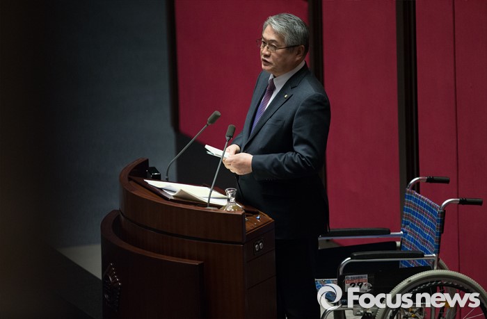 (서울=포커스뉴스) 테러방지법 직권상정에 반발해 야당의 무제한 토론(필리버스터)이 나흘째 진행되고 있는 26일 오후 서울 여의도 국회 본회의장에 13번째 필리버스터로 나선 김용익 더불어민주당 의원이 불편한 몸을 이끌고 무제한 토론을 하고 있다.