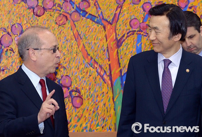 (서울=포커스뉴스) 26일 오후 서울 종로구 외교부 청사에서 윤병세 외교부 장관과 대니얼 러셀 미국 국무부 동아시아태평양담당 차관보가 대화하고 있다.