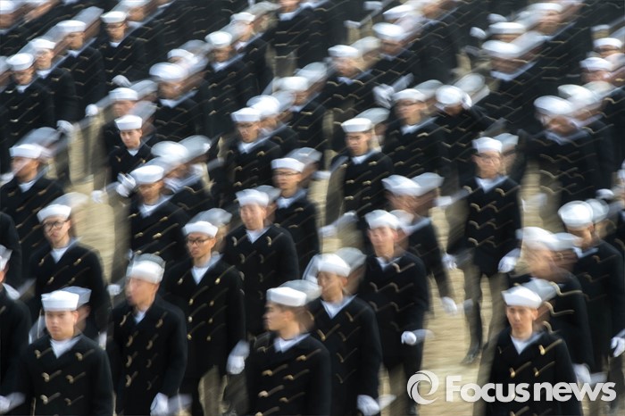 (서귀포=포커스뉴스) 26일 오후 제주 서귀포 제주해군기지에서 열린 '제주민군복합형관광미항' 준공식에 해군 장병들이 도열해 있다.