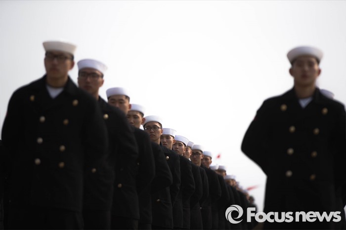 (서귀포=포커스뉴스) 26일 오후 제주 서귀포 제주해군기지에서 열린 '제주민군복합형관광미항' 준공식에 해군 장병들이 도열해있다.