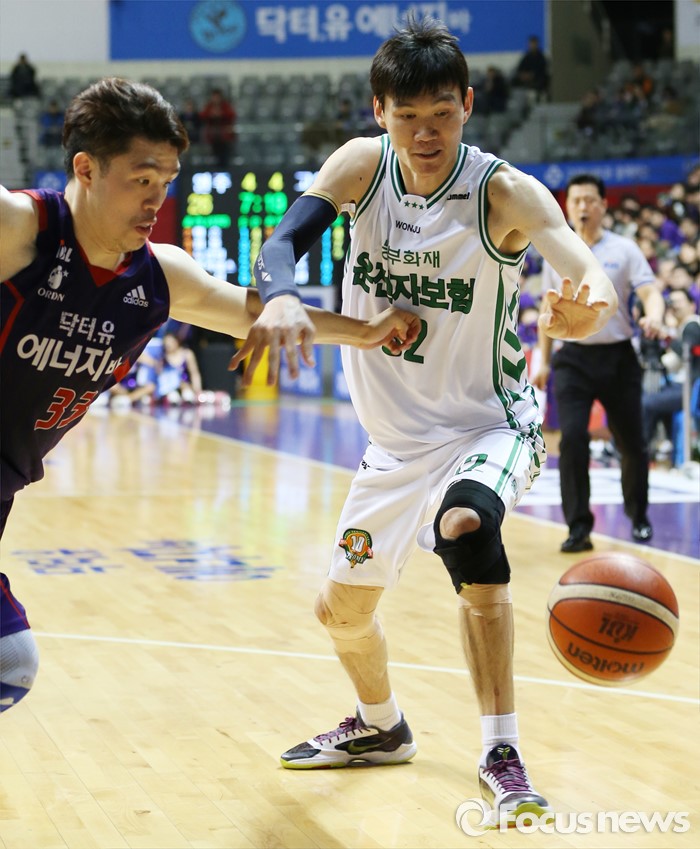 (고양=포커스뉴스) 26일 고양체육관에서 열린 2015-2016 프로농구 오리온-동부 6강 플레이오프 1차전에서 동부 김주성의 드리블때 오리온 이승현이 볼을 가로채려 달려들고 있다.
