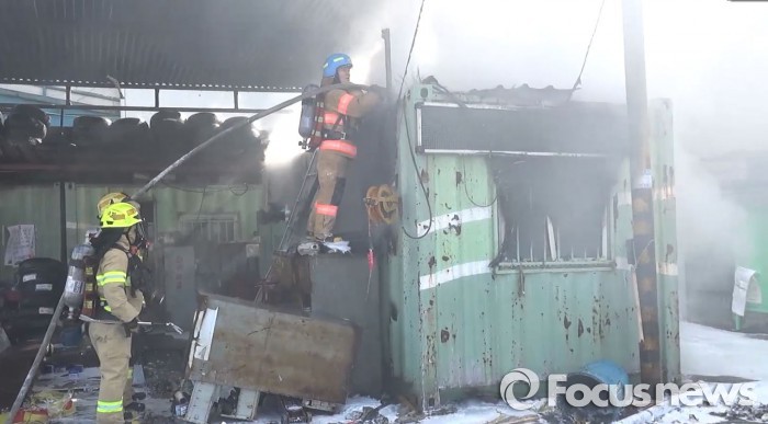 (서울=포커스뉴스) 26일 오전 10시 18분쯤 서울 양천구 신월동의 택시회사 1층 정비고 휴게실에서 화재가 발생해 12분만에 완전히 꺼졌다.