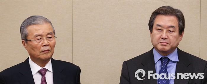 (서울=포커스뉴스) 테러방지법 직권상정에 반발해 야당이 무제한 토론(필리버스터)를 나흘째 진행하고 있는 26일 오후 서울 여의도 국회 귀빈식당에서 선거구 획정 및 쟁점법안 논의를 위해 열린 여야 지도부 회동에 참석한 김무성(오른쪽) 새누리당 대표와 김종인 더불어민주당 비대위 대표가 굳은 표정을 짓고 있다.