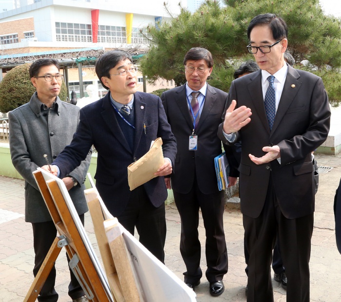 (대구=포커스뉴스) 이준식 부총리 겸 교육부장관이 26일 대구 수성구 동천초등학교를 방문, 신학기 대비 안전점검을 하고 있다. <사진제공=교육부>