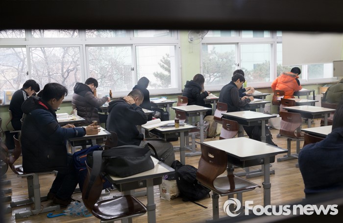 (서울=포커스뉴스) 27일 오전 서울 서초고등학교에서 제58회 사법시험 제1차시험에 응시한 수험생들이 시험전 마지막 복습을 하고 있다. 최근 법무부가 사법시험 폐지를 4년 유예하겠다는 입장을 밝혔으나, 내년 변호사시험법 개정작업이 사실상 중단된 상태여서 사시 존폐 여부가 불투명한 상황이다.
