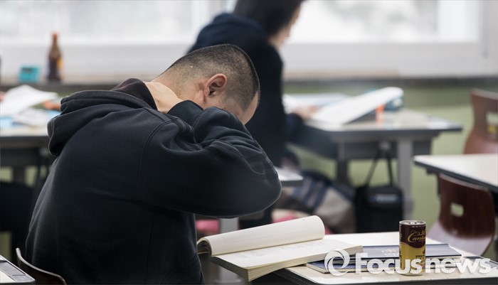 (서울=포커스뉴스) 27일 오전 서울 서초고등학교에서 제58회 사법시험 제1차시험에 응시한 수험생들이 시험전 마지막 복습을 하고 있다. 최근 법무부가 사법시험 폐지를 4년 유예하겠다는 입장을 밝혔으나, 내년 변호사시험법 개정작업이 사실상 중단된 상태여서 사시 존폐 여부가 불투명한 상황이다.