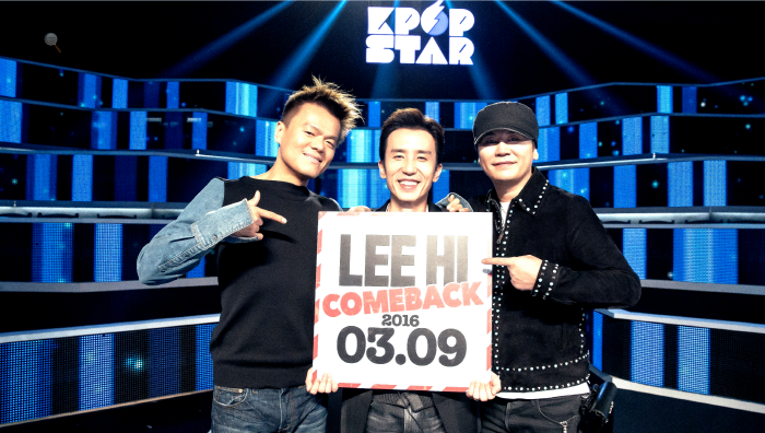 YG엔터테인먼트는 27일 공식블로그로 YG 양현석 대표 프로듀서, 박진영, 유희열 등이 함께 환한 미소를 지은 채 ‘이하이 컴백(LEE HI COMEBACK) 2016.03.09'라는 문구가 담긴 피켓을 든 사진을 공개했다.