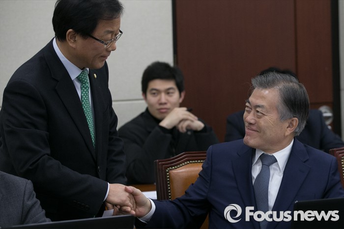 | △ 악수하는 문재인·윤후덕 |