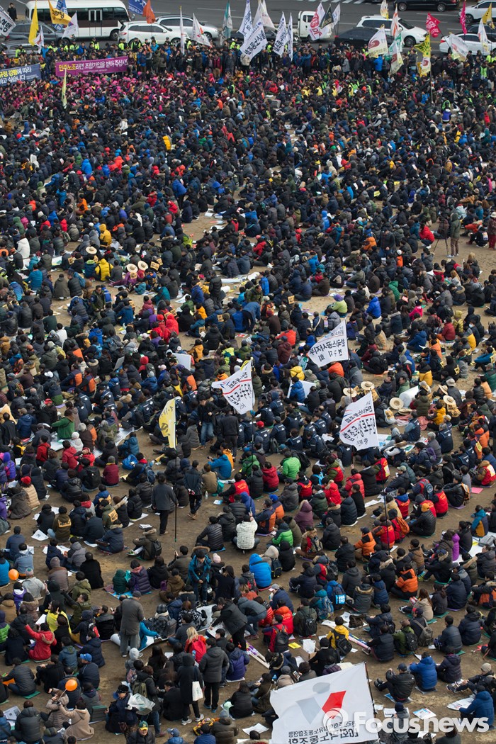 (서울=포커스뉴스) 27일 오후 서울광장에서 민주노총과 참여연대, 전국빈민연합 등 시민사회단체들이 4차 민중총궐기 집회에 참가하고 있다.