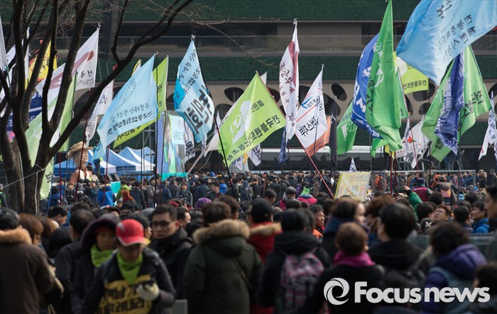(서울=포커스뉴스) 27일 오후 서울광장에서 민주노총과 참여연대, 전국빈민연합 등 시민사회단체들이 4차 민중총궐기 집회에 참가하고 있다.