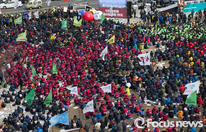 (서울=포커스뉴스) 27일 오후 서울광장에서 민주노총과 참여연대, 전국빈민연합 등 시민사회단체들이 4차 민중총궐기 집회에 참가하고 있다.