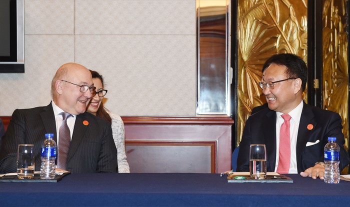 | △ 미셸 샤팽 프랑스 재무장관과 면담 갖는 유일호 부총리 |