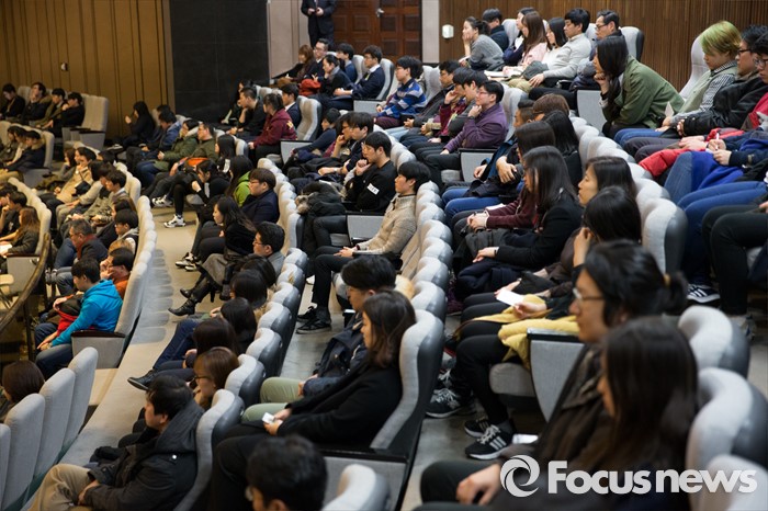 (서울=포커스뉴스) 테러방지법 직권상정에 반발해 야당의 무제한 토론(필리버스터)이 진행되고 있는 28일 오후 서울 여의도 국회 본회의 장에서 23번째 토론에 참여한 이학영 더불어민주당 의원이 발언하고 있는 가운데 시민 방청객들이 지켜보고 있다.