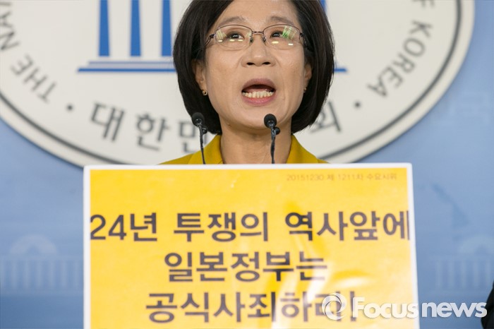 그는 "위안부 합의는 친일청산을 하지 못한 우리나라의 왜곡된 역사이자 굴종의 역사의 결과"라며 "올바른 역사와 사회정의 실현을 위한 첫 걸음은 위안부 피해자 할머니들의 명예회복인 일본의 진심어린 사죄와 법적 배상부터 시작해야 하기 때문"이라고 말했다.