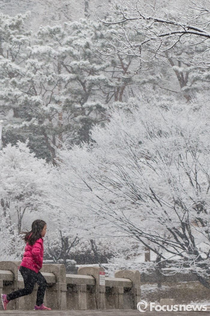 (서울=포커스뉴스) 수도권과 전국 곳곳에에 강한 바람과 함께 기습적인 폭설이 내린 28일 오후 서울 강북구 4.19 민주묘지에서 한 어린이가 즐겁게 뛰어놀고 있다.