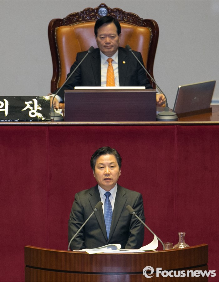 (서울=포커스뉴스) 테러방지법 직권상정에 반발해 야당이 무제한 토론(필리버스터)를 일주일째 진행하며 총 130시간을 돌파한 29일 오전 서울 여의도 국회 본회의장에서 토론에 참여한 홍종학 더불어민주당 의원이 발언하고 있다.