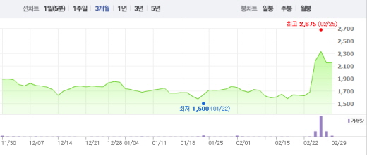 3차원(3D) 카메라 모듈업체인 나무가 또한 전일 대비 2300원(2.92%) 오른 7만6900원에 거래되고 있다.쎄니트 주가흐름<사진출처=네이버 캡쳐>