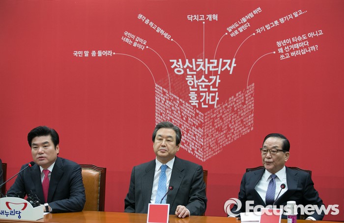 (서울=포커스뉴스) 원유철(왼쪽) 새누리당 원내대표가 29일 오전 서울 여의도 국회에서 열린 최고위원회의에 참석해 모두발언을 하고 있다.