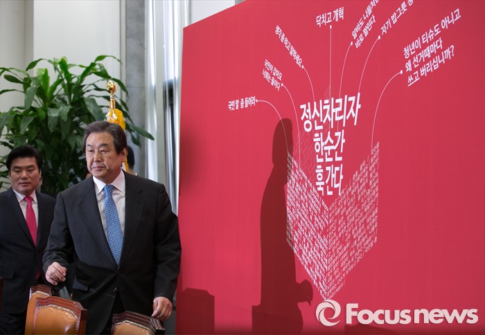 (서울=포커스뉴스) 29일 오전 서울 여의도 국회에서 열린 새누리당 최고위원회의에 김무성(오른쪽) 대표와 원유철 원내대표가 참석하고 있다.