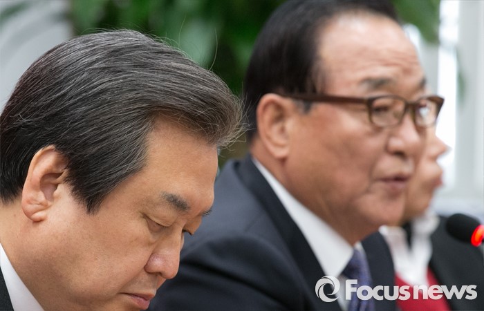 | △ 서청원 발언 듣는 김무성 |