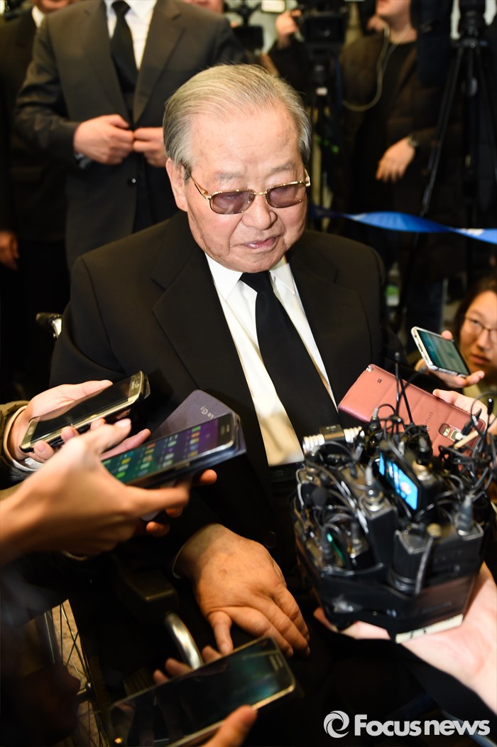 | △ 김영삼 전 대통령 조문 마친 김종필 전 총리 |