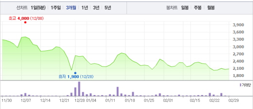 플렉스컴은 2000년 1월 설립된 회사로 연성인쇄회로 기판 제조를 포함한 인쇄회로 부품 등 전자 부품 사업을 하고 있다. 지난해 3분기에는 매출액이 2474억원, 영업손실 329억원으로 집계됐다.플렉스컴 주가흐름<사진출처=네이버 캡쳐>