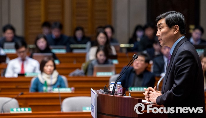 (서울=포커스뉴스) 이종걸 더불어민주당 원내대표가 29일 오후 서울 영등포구 국회에서 열린 의원총회에 자리해 모두발언 하고 있다.