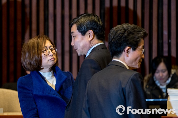 (서울=포커스뉴스) 이종걸 더불어민주당 원내대표가 29일 오후 서울 영등포구 국회에서 열린 의원총회에 자리해 은수미 더불어민주당 의원과 대화를 나누고 있다.