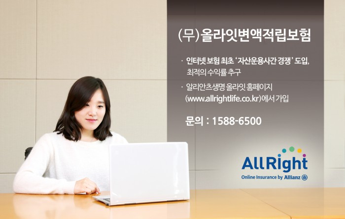 (서울=포커스뉴스) 알리안츠생명은 자산운용사 간 수익률 경쟁을 할 수있는 '(무)올라잇변액적립보험'을 오는 1일부터 인터넷보험 브랜드 올라잇 홈페이지에서 판매한다고 29일 밝혔다.