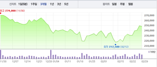 이어 최 연구원은 “특히 전문의약품을 주로 개발하는 SK 바이오팜의 파이프라인을 고려할 경우, 계열사 간 시너지 발생 가능성이 높다”고 덧붙였다.SK 주가흐름<사진출처=네이버 캡쳐>