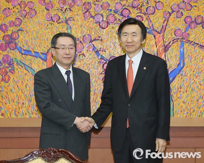 | △ 악수하는 윤병세 외교부 장관과 우다웨이 中 수석대표 |
