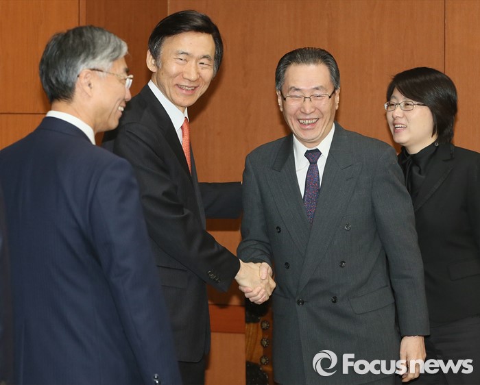 (서울=포커스뉴스) 29일 오후 서울 종로구 세종로 외교부청사에서 윤병세 외교부 장관과 우다웨이 북핵6자회담 중국 측 수석대표가 악수를 하고 있다.