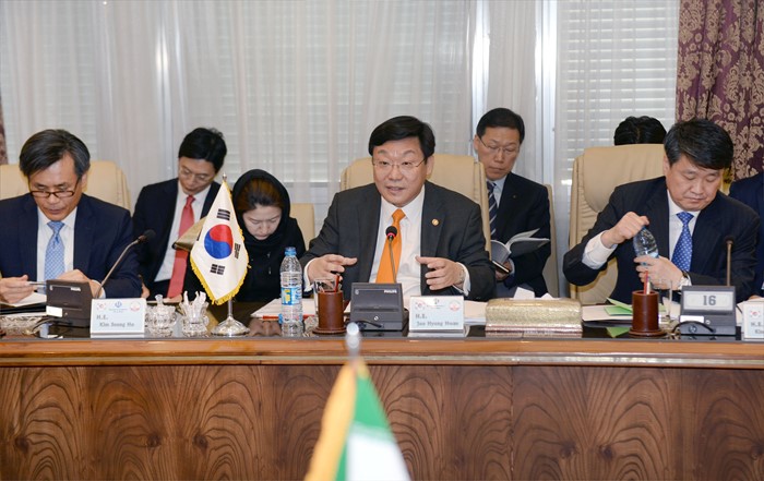 (서울=포커스뉴스) 주형환 산업통상자원부 장관이 29일(현지시간) 이란 석유부장관 집무실에서 비잔 남다르 장가네(Bijan Namdar Zanganeh) 이란 석유부 장관과 면담을 갖고 있다. <사진제공=산업통상자원부>