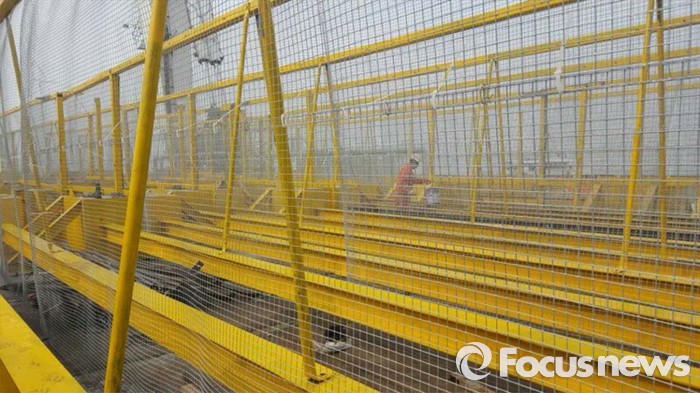 (서울=포커스포토) 세월호 주변을 둘러싸는 사각펜스 등 자재를 실은 상하이샐비지 소속 선박(센첸하오, Shen qian Hao)*이 지난 26일 낮 중국 상하이를 출발해 29일 오전 10시 30분경 목포신항으로 들어왔다. 해수부는 이번에 설치할 철제 사각펜스는 앞으로 선수들기 및 인양시 유실방지망을 설치할 수 없는 선체 좌현쪽 개구부 등을 통한 유실을 방지하기 위하여 가로 200m×세로 160m×높이 3m 규모로 눈금 2.0㎝ 직사각형 모양의 철재망 36개 세트로서 25일간 설치할 예정이라고 밝혔다. <사진제공=해양수산부>