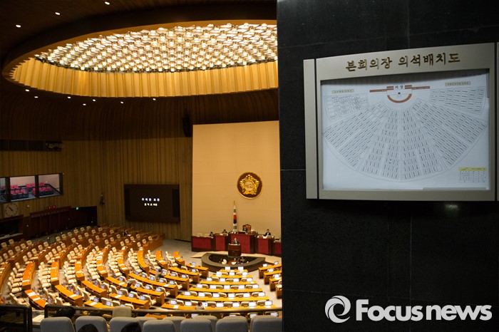 | △ 필리버스터 7일째 밤의 본회의장 |