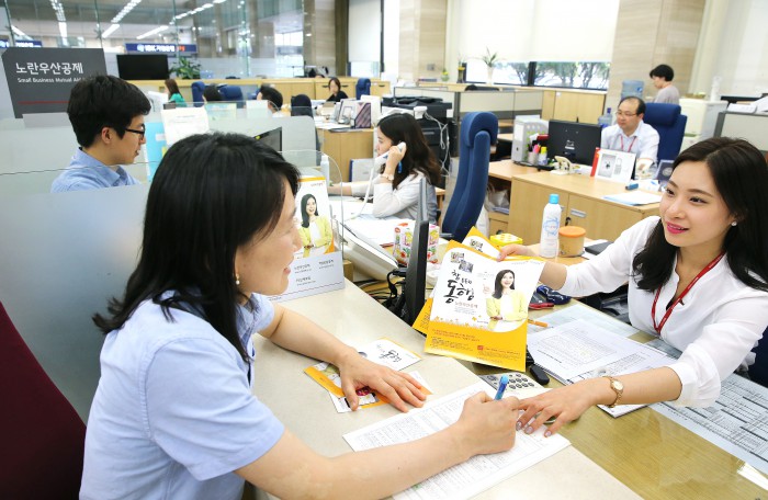 가입은 중기중앙회와 금융기관(우리 · KB국민 · KEB하나 · IBK기업 · 신한 · 대구 · 광주 · 부산 · 경남 · 농협 · 우체국) 창구를 방문하거나 노란우산공제 홈페이지(www.8899.or.kr)를 통해 할 수 있다. 노란우산공제에 대한 문의는 콜센터(1666-9988)로 하면 된다.한 소상공인이 노란우산공제에 대해 상담을 받고 있다.<사진제공=중기중앙회>