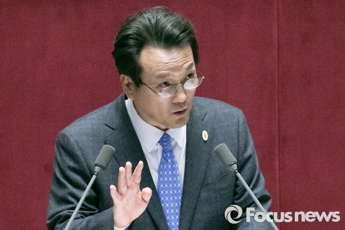 (서울=포커스뉴스) 안민석 더불어민주당 의원이 1일 오후 서울 여의도 국회 본회의장에서 테러방지법 저지를 위한 무제한 토론(필리버스터)을 하고 있다.