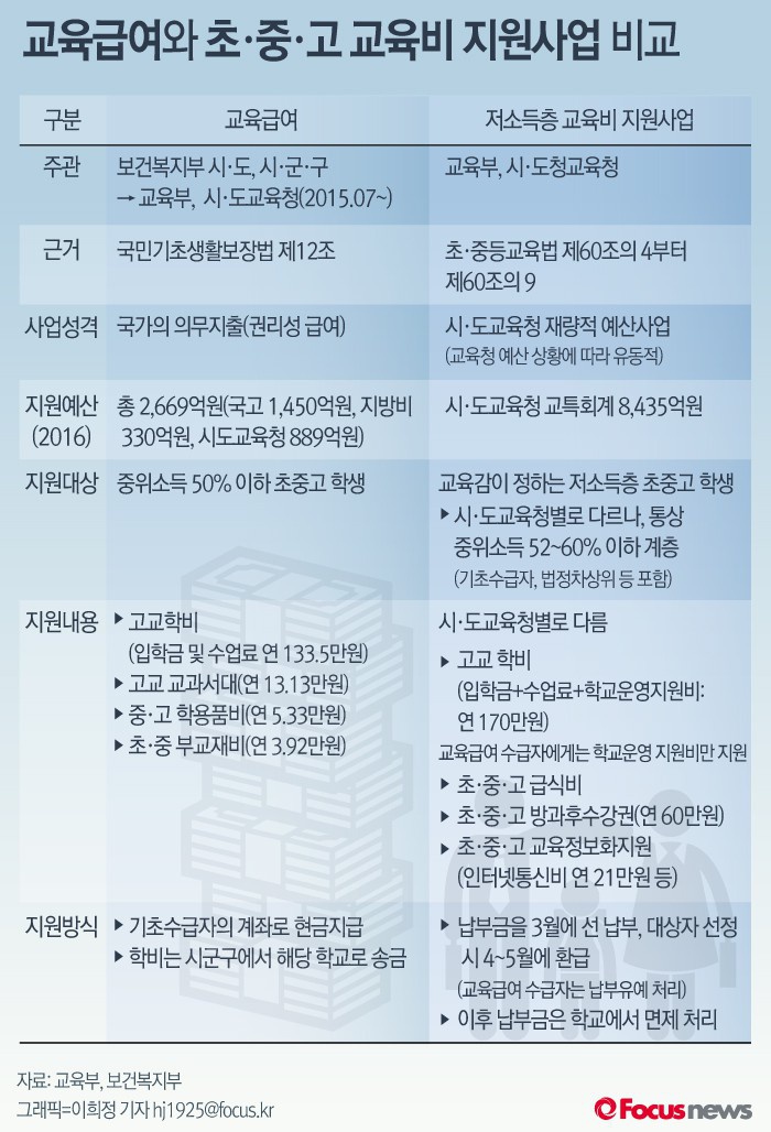 | △ [그래픽] 교육급여와 초·중·고 교육비 지원 사업 비교 |